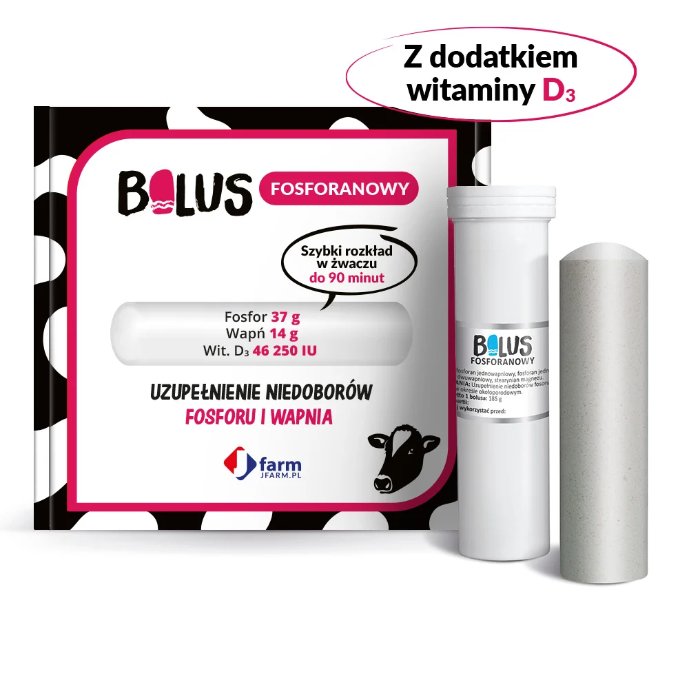 dla krów mlecznych; zawiera 37 g fosforu i 14 g wapnia w jednym bolusie